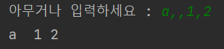 (ex) a, b = input('두 개의 변수를 쉼표를 사이에 두고 입력하세요').split(',')