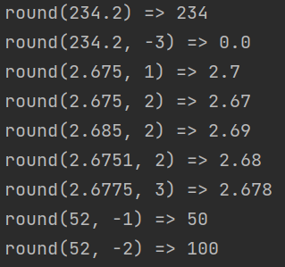 (ex) round(234.2428, -3) = 0.0(100의자리 숫자로 판단하여 출력)